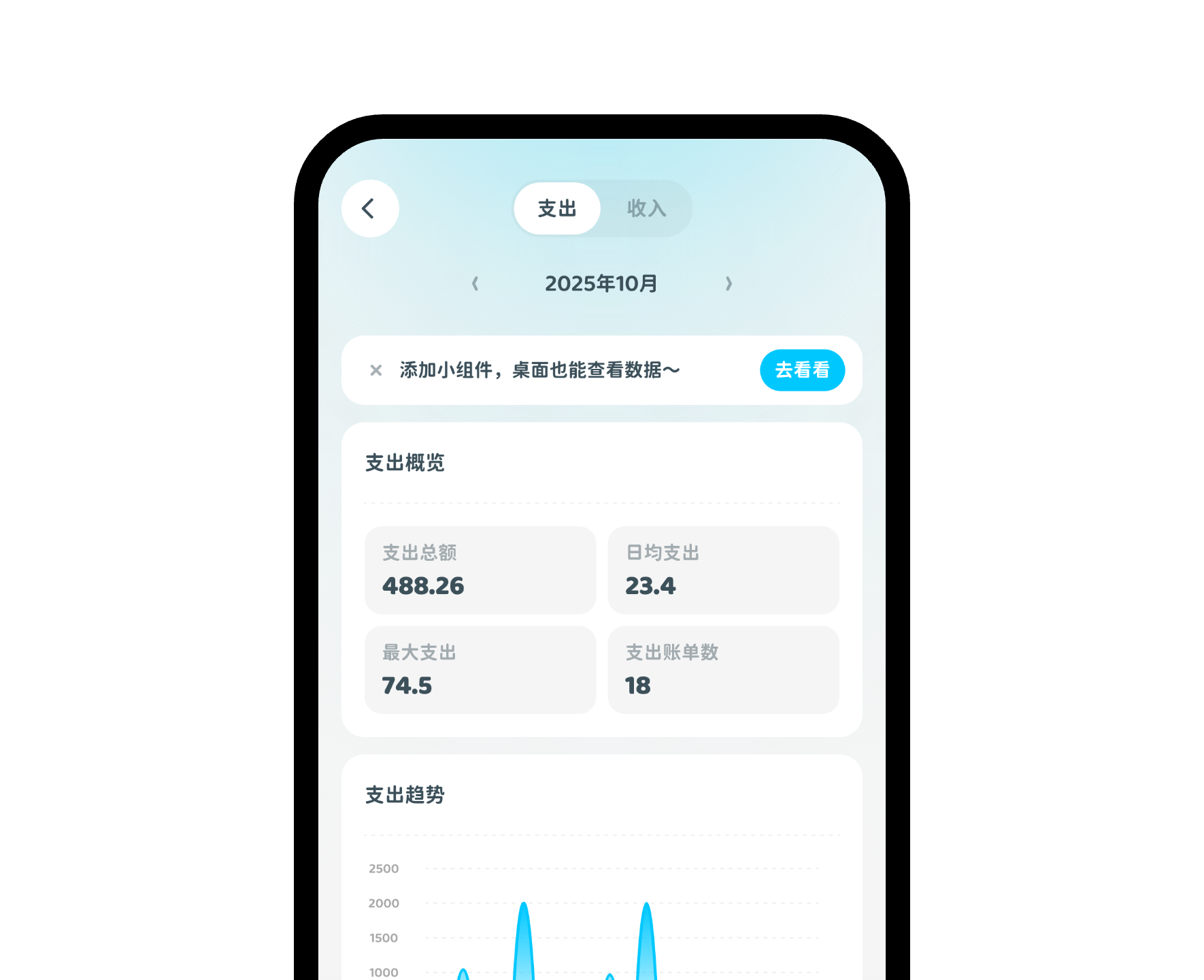 自动计算每日、每月的总收入和总支出,提供日均支出、日均收入等关键数据,并以多维度图表展示,直观了解收支情况,同时支持自定义统计时间范围,满足个性化需求,助您更好地分析财务状况。
